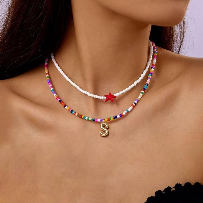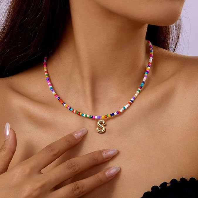 - PERSONALIZED DESIGN: Features a gold-plated bubble letter initial pendant on a vibrant beaded chain with multicolored seed beads for a playful, customized look